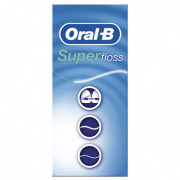 Oral B Super Floss Seda Dental Precortada 50 unidades es suave y contiene unos extremos rígidos, siendo el resto una seda esponjosa que facilita la limpieza bucal. No daña los dientes ni perjudica a las encías. Es ideal para acceder a las zonas interdentales a las que no se puede llegar con el cepillado manual. Los expertos recomiendan el uso de hilo o seda dental para conseguir una higiene bucodental completa. Es ideal para limpiar brackets, puentes y espacios interdentales amplios. Incluye tres componentes únicos: un extremo rígido, una porción esponjosa y una sección de seda dental estándar. Actúan conjuntamente para ofrecer los máximos beneficios.