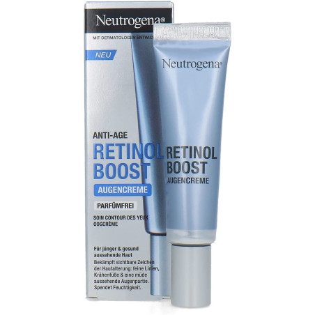 La crema de ojos antienvejecimiento y sin perfume Neutrogena Retinol Boost se absorbe muy rápidamente después de aplicarla, liberando el retinol puro en la capa superior de la piel.