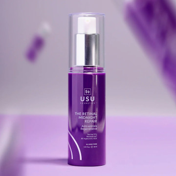 Esencia-crema antiedad de uso nocturno formulada con Retinal al 0.1%, Resveratrox® y un complejo de 8 tipos de Ácido Hialurónico, diseñada para actuar eficazmente sobre los tres signos clave del envejecimiento: firmeza, arrugas y manchas con resultados visibles.